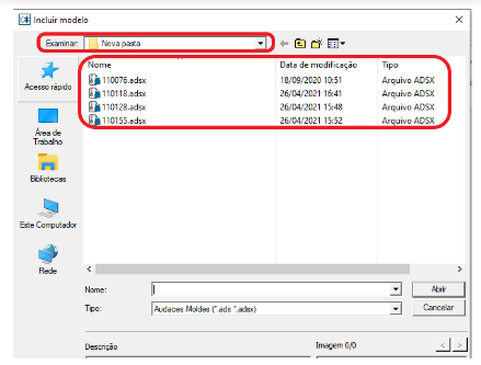 Na nova tela, clicar em “NOVA PASTA” e selecionar a pasta com os moldes da