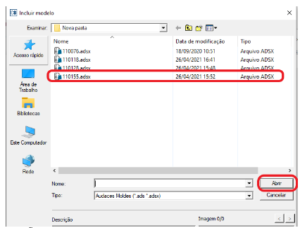 Selecionar o molde da referência, clicar “DUAS VEZES” ou clicar em “ABRIR”.