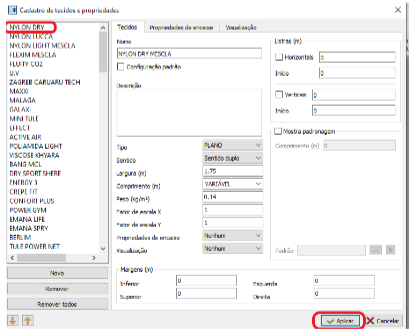 Na nova tela, selecionar o tecido e clicar em “APLICAR”.