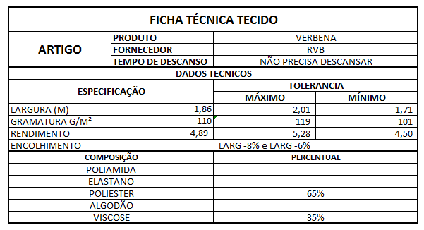 É de responsabilidade da engenharia de produto manter o arquivo de ficha técnica de tecidos atualizados para que os setores possam utiliza-los.